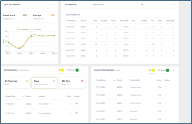 - The Scores and Progress are updated in real time on the QE Review dashboard.