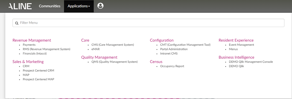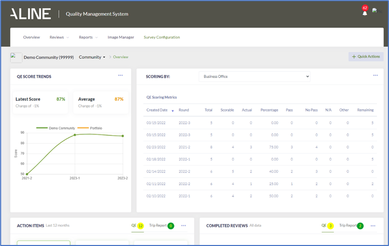 Selecting Quality from the Aline Suite Dashboard will take users to the application and the Quality Dashboard.