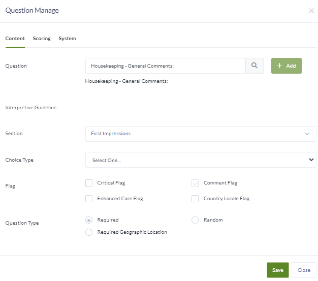 Comment Flag – This option is defaulted on, so surveyors will have the option to add a comment for any question consistently.